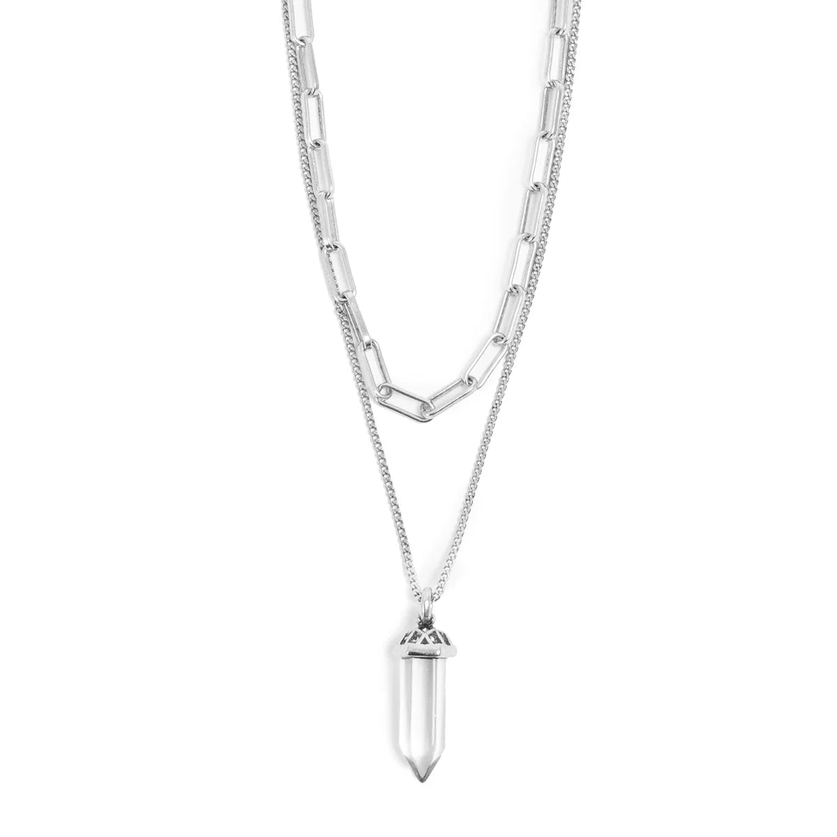Vad mer kan du önska dig? Halsband med två rader, länkar och glas! Lika fint till fest som till vardags. Glassprismor, kristallstenar. 45/50 cm + 5 cm förlängning.