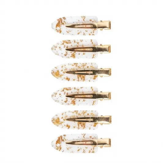 Upptäck Brushworks No Crease hårklämmor – den perfekta lösningen för att hålla håret på plats utan att lämna märken! Klämmorna har ett skonsamt grepp och passar alla hårtyper, vilket gör dem idealiska att använda vid makeup eftersom de säkert håller håret borta från ansiktet. Setet innehåller sex genomskinliga klämmor med guldflingor, som kombinerar funktion med stil. De transparenta klämmorna med guldton ger en lekfull touch till din hårstyling och passar dig som gillar färgglada accessoarer. Tillverkade av högkvalitativa material är dessa hårklämmor både hållbara och långlivade. Dessutom har klämmornas släta yta en design som förebygger trassel och gör dem lätta att använda samt bekväma att bära hela dagen. PETA-godkända – cruelty-free och veganska.